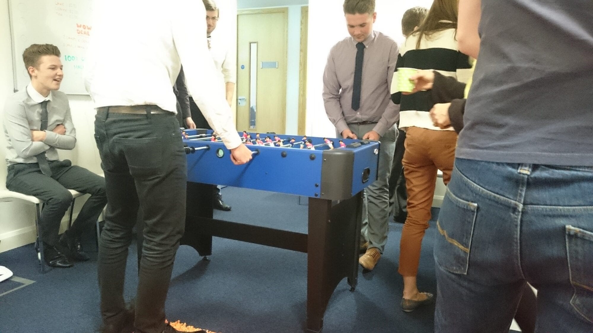 We set-up the office ‘Blue room’ into a temporary cake selling, coffee making, football table playing, fundraising room.